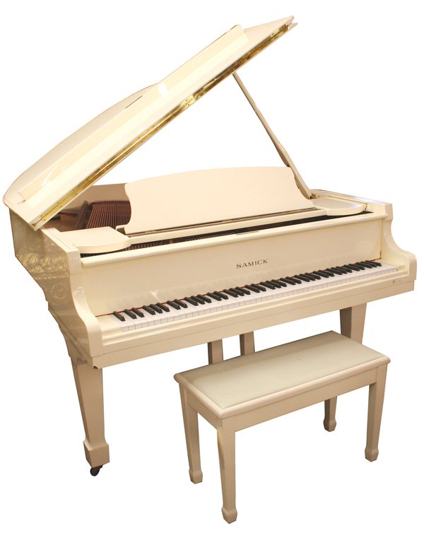 Small White Grand Piano / Grand pianos come in different lengths beginning at 4' 10 and going up to 10 feet in length (currently in production) the most popular and one of the smallest grand pianos is the baby grand piano.